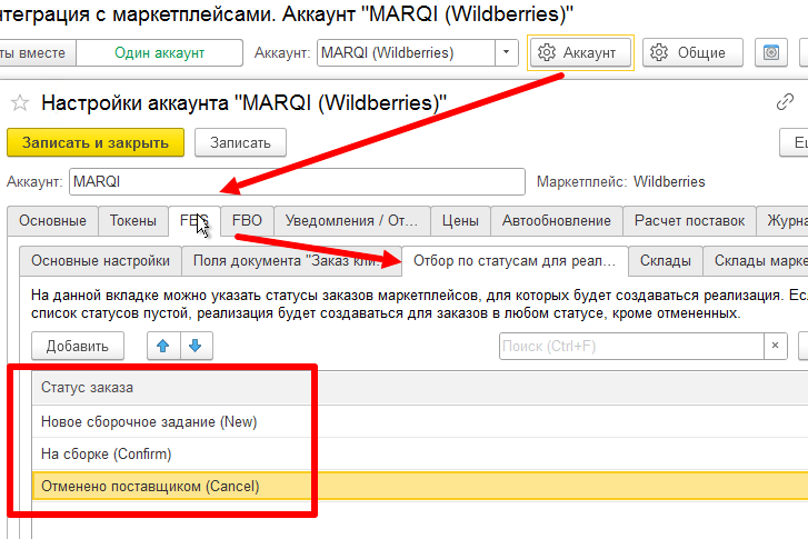 Настройка в нашем продукте "МС:Интеграция с маркетплейсами" выполняется очень просто: