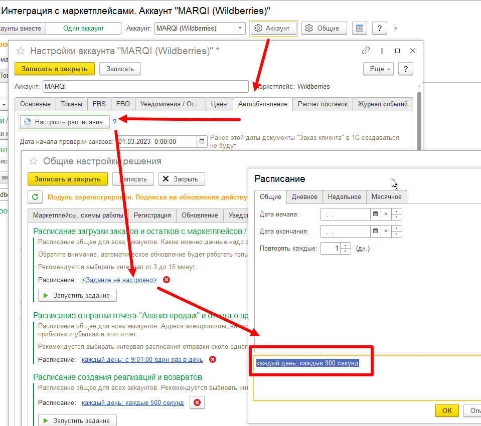 Если уведомления не нужны, можете сразу переходить к настройкам автоматического обмена 1С с маркетплейсами. (ссылка: Руководство пользователя "МС:Интеграция 1С с маркетплейсами")