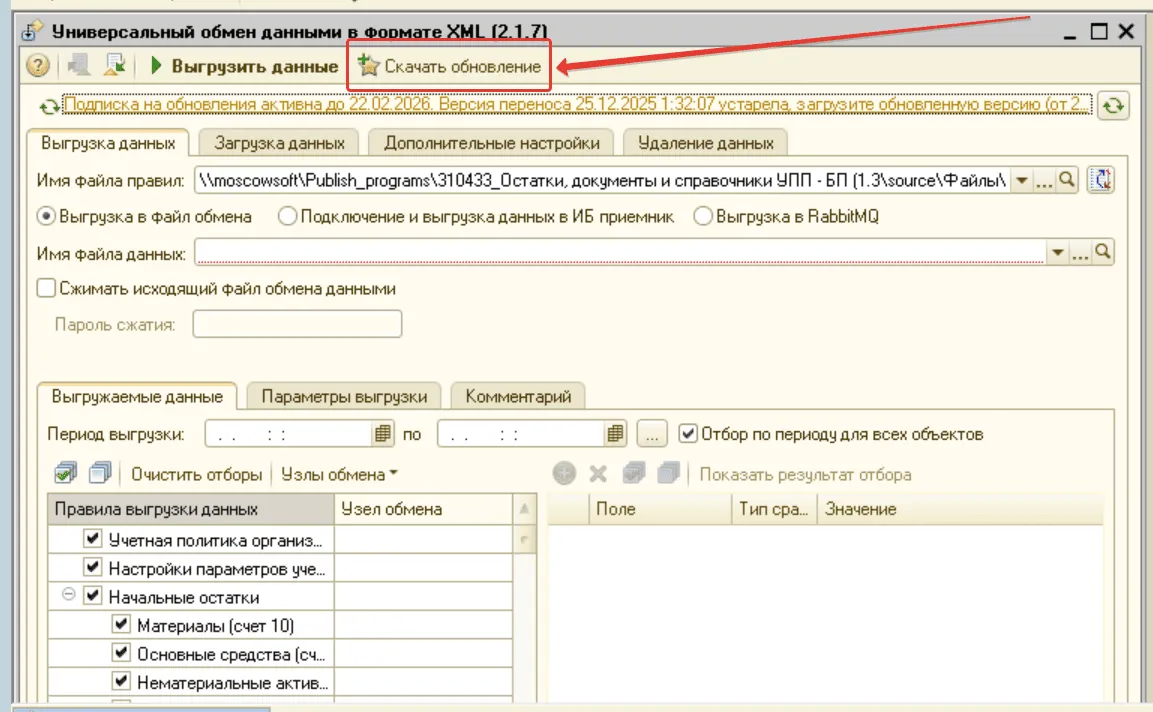- Как скачивать обновления переноса данных 1С