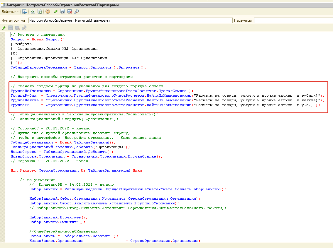 Группы финансового учета расчетов