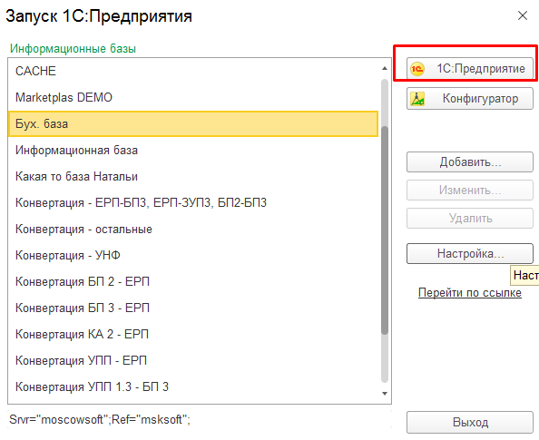 Теперь, наконец, настало время для запуска информационной базы, режим 1С: Предприятие.