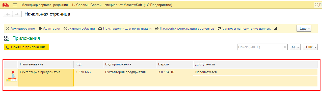 Посмотрим, что произойдет, когда настройки перехода завершатся. В автоматическом режиме выгрузятся данные и создастся новое приложение. Оно находится в личном кабинете сервиса 1С: Фреш.