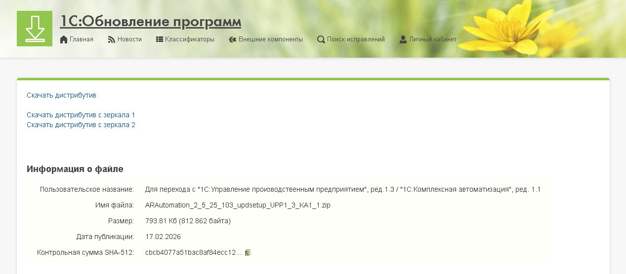 Понятно, что для других релизов ссылка будет другая. Ищите на странице конкретного релиза новой программы 1С.